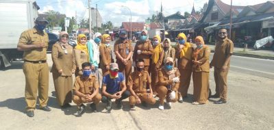 Kali ini pegawai di lingkup Dinas Pekerjaan Umum dan Penataan Ruang Sijunjung membagikan 500 masker di pasar Sijunjung, Selasa (21/4/20).