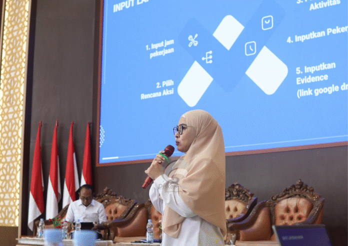 “Evaluasi dan Validasi terhadap seluruh laporan aktivitas kinerja staf dilakukan secara cermat dan terperinci. Proses ini merupakan agenda mingguan yang wajib dilaksanakan oleh Kepala Dinas (Kadis) di masing-masing unit kerja. Tujuan utama dari proses ini adalah untuk menjamin keabsahan, akuntabilitas, dan objektivitas dari setiap capaian dan kegiatan yang telah dilaporkan, sehingga data kinerja yang dihasilkan benar-benar valid dan dapat dijadikan dasar untuk pengambilan keputusan strategis.” Ujarnya sebagai penutup materi.