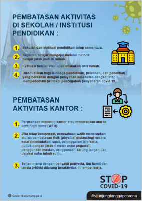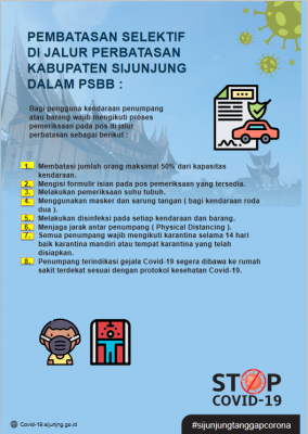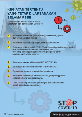 BerandaCOVID-19Panduan PSBB Sijunjung COVID-19 Panduan PSBB Sijunjung By mega asbut 22 April, 2020 0 61 Share Facebook Twitter Pinterest WhatsApp Share Facebook Twitter Pinterest WhatsApp Berita sebelumyaPress Release: Humas Dinas Kominfo Senin, 21 April 2020Berita berikutnya500 Masker Dibagikan ASN di Lingkup Dinas PUPR Sijunjung mega asbut RELATED ARTICLES COVID-19 Penetapan PPKM Level 2, Pemkab Sijunjung Tetap Lakukan PTM, Daftar Lengkap Wilayah PPKM di Sumbar 15 Februari, 2022 COVID-19 5 Warga Kabupaten Sijunjung Positif Covid-19, Satu Orang Dinyatakan Sembuh 15 Februari, 2022 COVID-19 Launching Vaksinasi Covid-19 Bagi Anak Usia 6-11 Tahun, Ini Harapan Bupati Benny Dwifa 20 Januari, 2022 LEAVE A REPLY Batal balasanLogin untuk meninggalkan komentar Most Popular DPR RI Gelar Reses, Siap Kawal Anggaran Peningkatan Infrastruktur Jalan dan Transmigrasi 12 Oktober, 2025 Pelatihan Pengelolaan Media Sosial, Langkah Diskominfo Sijunjung Tingkatkan Kualitas Informasi Publik 12 Oktober, 2025 Wujudkan Sijunjung Bebas Sinyal, Andre Rosiade Resmikan BTS Telkomsel di Kampung Baru: Seluruh Nagari Sudah Ter-Cover 7 Oktober, 2025 Sinergi Pembangunan Transmigrasi: Pemkab Sijunjung dan Tim Ekspedisi Patriot Gelar FGD Muaro Takung-Kamang Baru 4 Oktober, 2025 Muat lebih Recent Comments