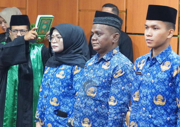 DISKOMINFO SIJUNJUNG – Pemerintah Kabupaten Sijunjung pada Selasa (21/10/2025), secara resmi melaksanakan acara pengambilan sumpah/janji Pegawai Negeri Sipil (Pengangkatan CPNS menjadi PNS dari STTD Pola Pembibitan Perhubungan dan Lulusan IPDN) dan sumpah/janji Jabatan Fungsional di lingkungan Pemerintah Kabupaten Sijunjung. Acara yang berlangsung khidmat ini digelar di Ruang Kerja Bupati Sijunjung, menandai penambahan serta pengukuhan sumber daya manusia baru untuk memperkuat kinerja birokrasi daerah.